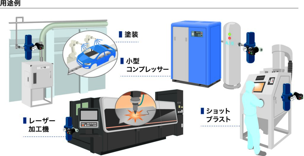 コンプレッサーエアーの”水・油・オイルミスト”のトラブル対策に 圧縮空気用フィルター